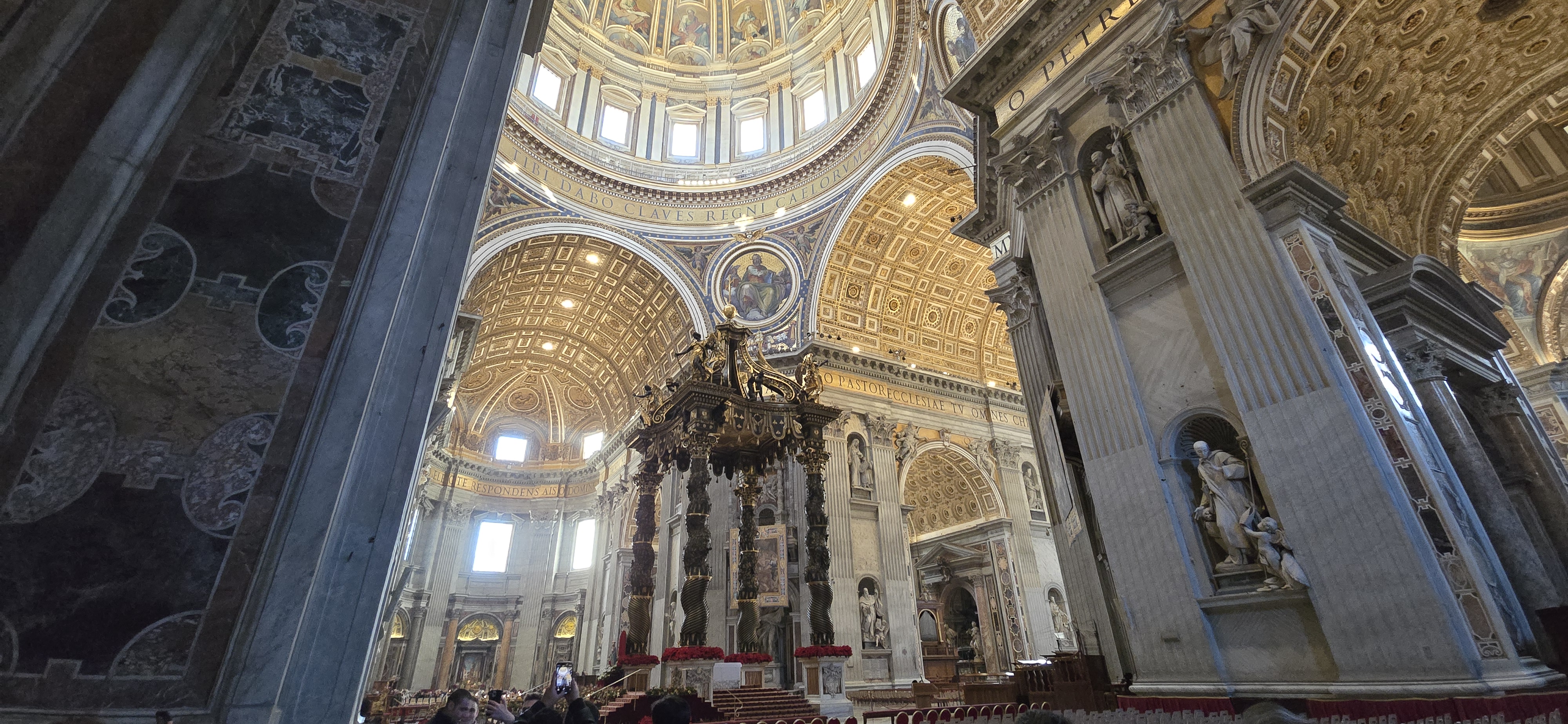 교황청 (또는 바티칸 시국) 은 그 면적이 경복궁보다 조금 크다고 한다. 그 영토의 10% 정도를 성 베드로 성당과 그 앞의 광장이 차지하고 있다. 성 베드로 성당의 내부는 종교적 엄숙함보다는 화려하고 사치스런 왕궁이라는 느낌이 강하다. 여러가지 색깔의 대리석과 금으로 뒤덮여 있어서 그런듯 하다.