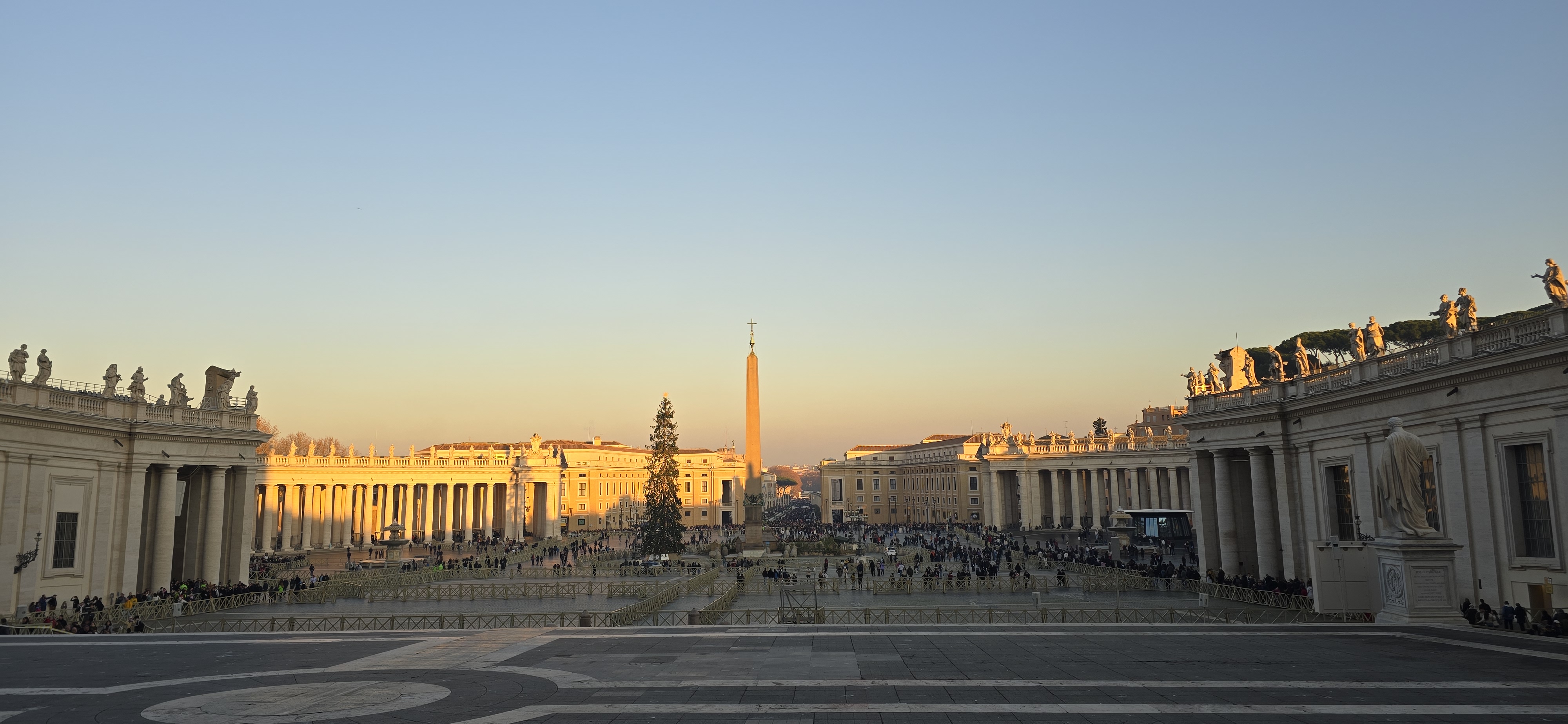 광장의 중앙에 성 베드로가 순교 당했던 경기장에 있었던 오벨리스크가 세워져 있다. 기독교 성당에 어울리도록 이집트의 오벨리스크 위에 십자가를 설치했다. 로마의 대부분의 관광지들은 인터넷으로 입장권을 구매할 때 시간 예약이 가능한데 성 베드로 성당은 무료이지만 예약도 안되고 보안 검사대도 거쳐야 하고 또 한꺼번에 들어가는 인원 수도 제한하기 때문에 오랫동안 줄을 서서 기다려야 한다. 그리고 성당 내부의 화장실도 공개하지 않는다.