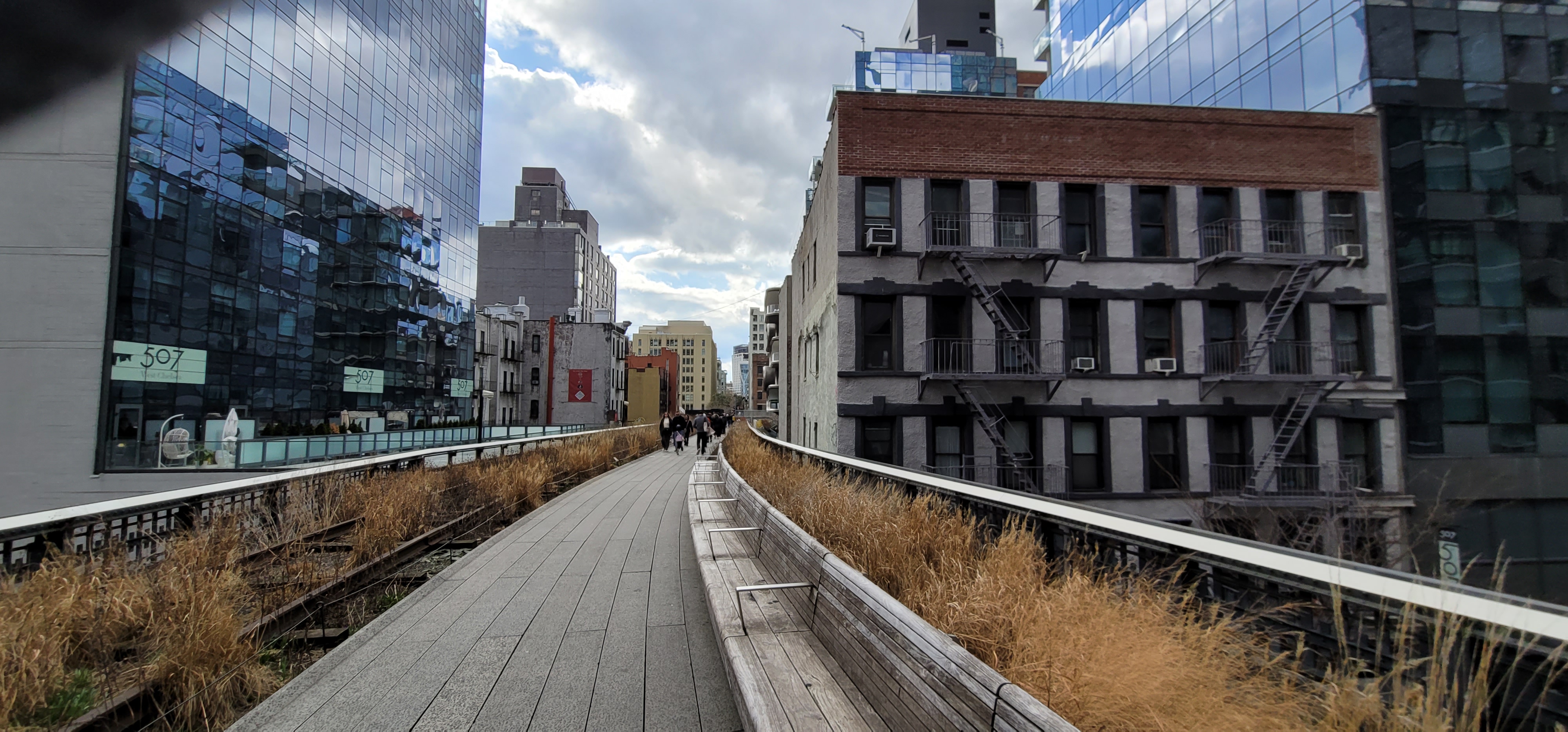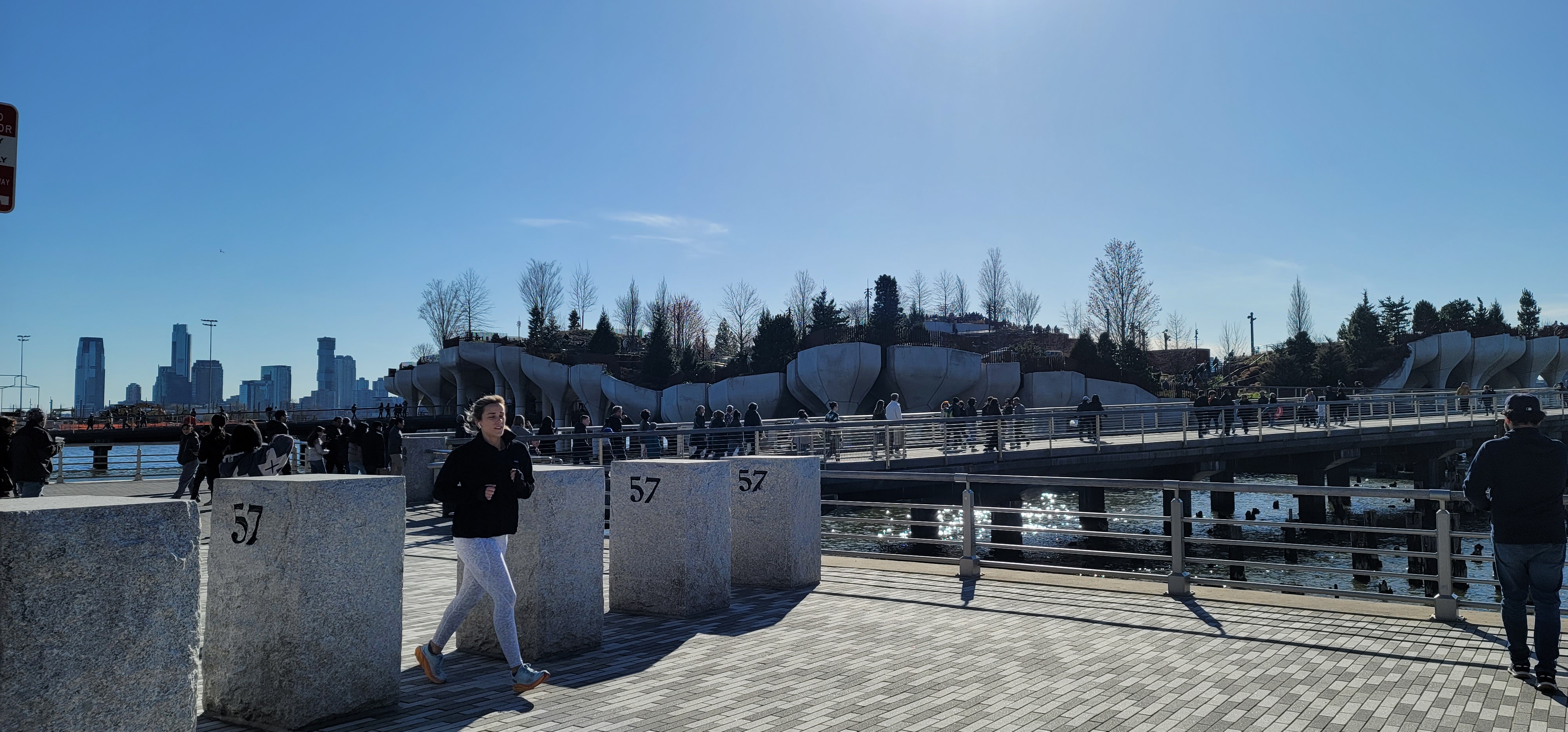 2009년 부터 개방되기 시작하여 현재 (2023) 1.45 mile (2.3km) 길이의 공원으로 확장되었다. 주말에 가면 사람들이 좀 많기는 해도 다양한 도시의 풍경이 펼쳐지는 길이고 현대 작가들의 조형물들이 계속 바뀌면서 전시되어 여러번 가도 싫증이 나지 않는 곳이다. 하이라인의 북쪽 끝 근처엔 뉴저지를 왕복하는 페리 터미널이 있어서 (Midtown 39 street) 뉴저지에서 허드슨 강을 건너와 허드슨 야드 - 하이라인 - 첼시 마켓 - 그리니치 빌리지로 이어지는 아주 훌륭한 산책코스를 즐길 수 있다.