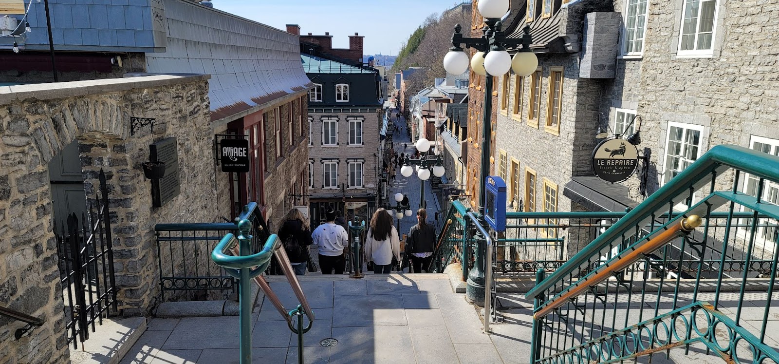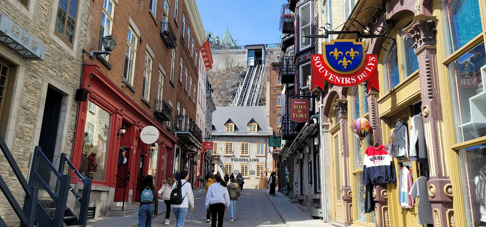 아래 마을에는 Petit Champlain 거리와 Place Royale 광장이 있다. Champlain 은 New France 의 아버지라고 불리는 사람이다. 프랑스인의 퀘벡 정착을 시작한 사람이기 때문이다. Place Royale 은 루이 14세가 자신을 기념하는 광장을 식민지 곳곳에 만들라고 굳이 자신의 흉상을 보내어 그렇게 이름 붙힌 곳인데 올드 퀘벡에서도 가장 먼저 프랑스인들이 정착한 곳이라고 한다. 올드 퀘벡은 크지 않아서 윗마을 아랫마을 다 포함해서 1박2일이면 관광하기에 충분하다.